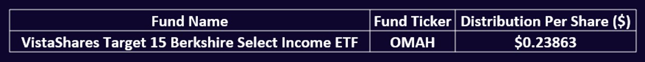 DATELINE (April 25, 2025) – VistaShares, an innovative asset manager seeking to disrupt the status quo in thematic exposures, income investing, and more, is today announcing the April monthly distribution amount for the VistaShares Target 15™ Berkshire Select Income ETF (OMAH).